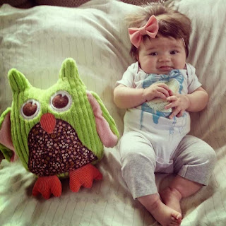 Last Monday (October 14th) Vallery turned 3 months. Holy smokes! I can't believe next month we will be starting rice cereal! She has gotten to be so vocal! She does her little 'screams' when she is happy and likes to be involved. When we are all sitting at the dinner table during supper and she is in her bouncy seat, V likes to make it known that she is still there and we pay attention to her. The majority of the time she is a pretty relaxed baby. She is still take 3-4 naps a day and sleeps from about 9p - 7a at night and is still being swaddled. (On the weekends we usually don't get up until 730 or so...). She is still sleeping in our room. We are soon going to be moving her to her room, but with Josh being gone a lot of the nights, it is hard for me to feel safe without him there. If it were up to me I would sleep with both kiddos, but I know Bo wouldn't sleep as good and it would be more for me than him.